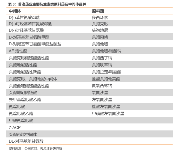 抗生素类布局完整,中间体及原料药品种丰富。公司官网显示,目前公司抗生素类中间体及原料药品种超30种,品种丰富,产品矩阵齐全。