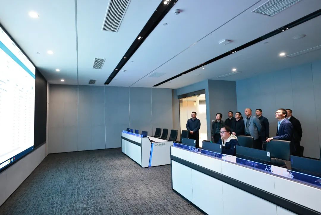 调研组首先走进普洛药业安全实验室,现场了解AI技术在风险预警与工艺安全评估中的创新实践。实验室负责人演示了从数据集成到智能决策的全流程管控体系,通过动态监测与模型分析实现研发、生产环节风险的精准预判。在数字技术应用中心,驻外企业安全管理人员通过大屏详细展示了安全信息化平台六大功能模块建设情况。