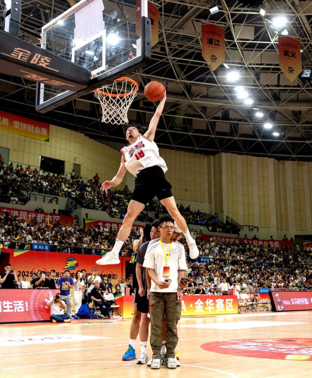 此刻的金华赛场激战正酣!7月13日至20日,金华各县(市、区)的劲旅正为争夺代表金华出战省级“城市争霸赛”的宝贵席位而全力拼搏。聚光灯下,赛场上球员们展现的拼搏激情与观众席涌动的助威热情,共同构成了这片属于篮球的快乐海洋。