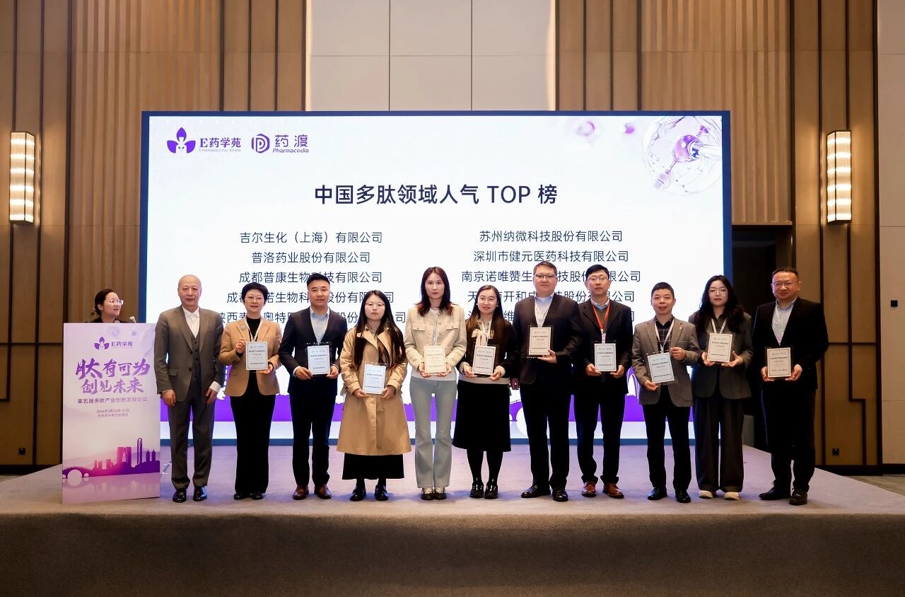 近日,由E药学苑主办的第五届多肽产业创新发展论坛于苏州隆重启幕。为赋能产业高质量升级、引领行业创新风向,E药学苑联合药渡重磅发布多项行业荣誉并举办颁奖盛典。凭借前瞻的战略布局、深厚的产业积淀与卓越一体化CDMO综合服务能力,普洛药业成功入选2025【中国多肽领域人气 TOP 榜】重磅奖项。该荣誉奖项,是业界对公司品牌影响力、技术实力及专业服务品质的高度认可与权威肯定。