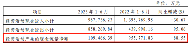 经营现金流下滑近九成