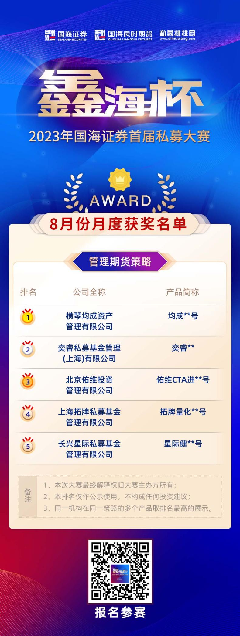 2023年4月,国海证券携手国海良时期货、私募排排网重磅推出首届“鑫海杯”私募大赛。本届大赛旨在提供公平、公正的比赛平台,继而遴选出具有优秀卓著投资能力且具备长期发展条件的优质私募,并通过设立丰厚的大赛奖励,赋能优秀私募基金管理人稳健发展。