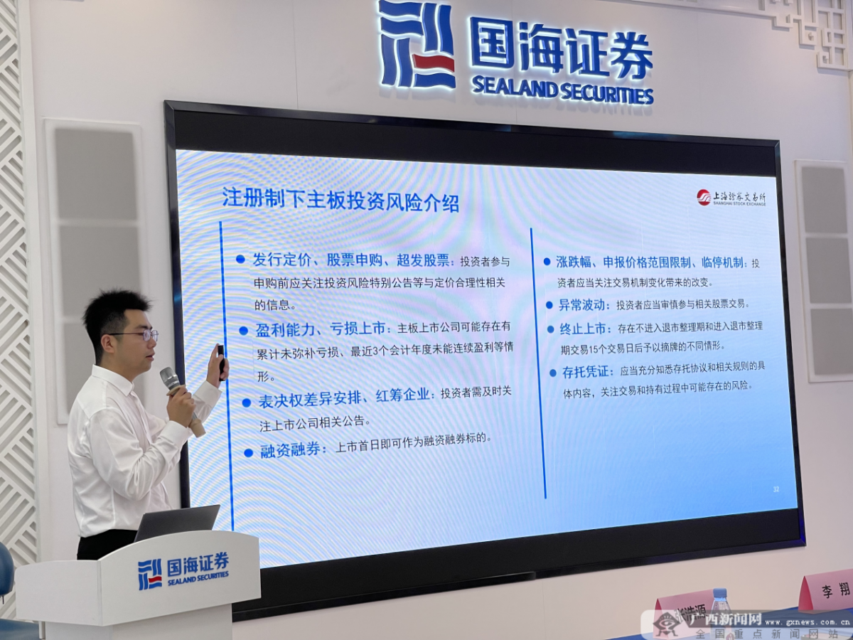 上交所投资者服务部讲师向投资者讲解注册制。国海证券投教基地供图