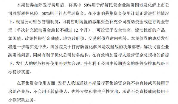 彼时,广西投资集团承诺不会直接或间接用于房地产业务和小额贷款业务,不会用于转借他人、弥补亏损和非生产性支出。