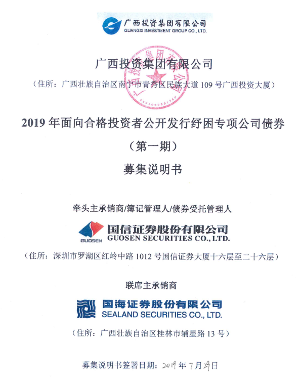 “19桂纾01”,全称为“广西投资集团有限公司2019年面向合格投资者公开发行纾困专项公司债券(第一期)”,则是广西首支纾困专项债。