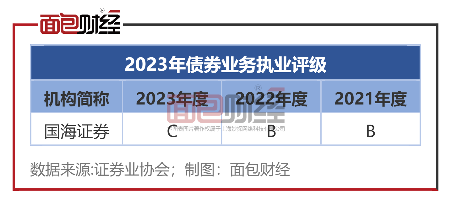 公开数据显示,国海证券的债券业务执业质量评级出现下降,降至C。2021、2022年度,国海证券的债券业务执业质量评级均为B。
