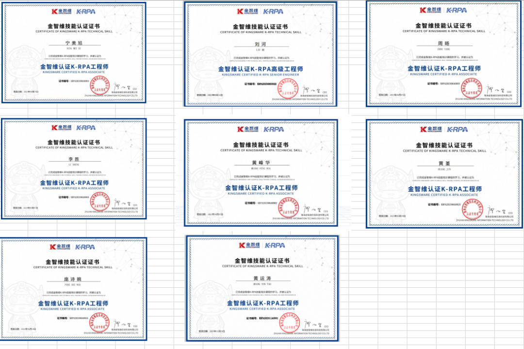 为进一步降本增效,加强自主开发和维护能力,公司经过近3个月的努力,将原有UIPAHT平台中的16个RPA应用场景进行自主开发迁移至金智维RPA平台,并新增自研9个RPA应用,最终实现25个应用场景全部在金智维RPA平台重新开发上线,目前运行正常。此次自主开发金智维RPA项目在降本增效的同时,促进了员工专业素质的提升。
