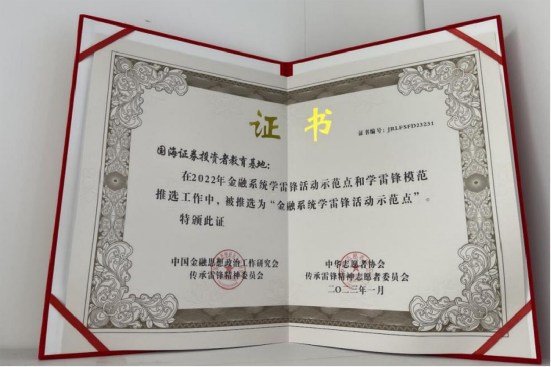 国海证券投资者教育基地被命名为“金融系统学雷锋活动示范点”