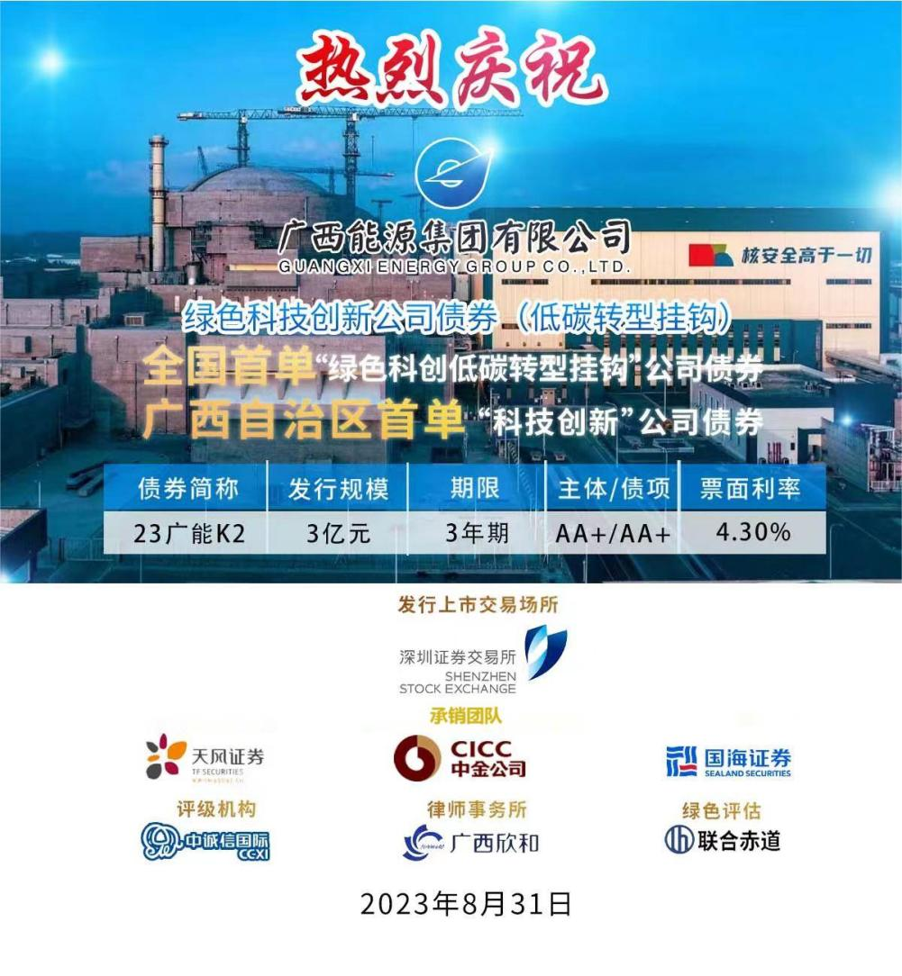 国海证券助力广西能源集团成功发行全国首单“绿色科创低碳转型挂钩”公司债