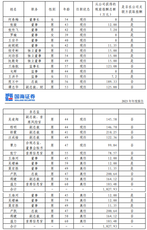 “三张表”数据显示,2023年国海证券薪酬总额为14.01亿元;而在2022年为12.78亿元,同比增幅为9.59%。