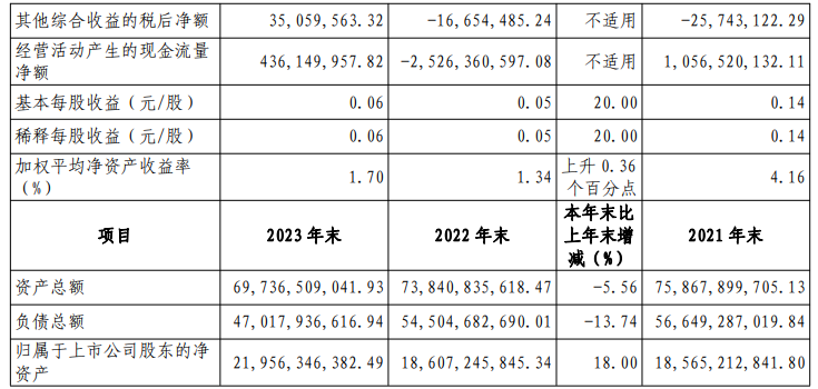 年报显示,全年营业收入41.88亿元,同比增长15.81%;归母净利润3.27亿元,同比增幅达31.18%。截至报告期末总资产为697.37亿元,同比下降5.56%;其中归属于上市公司股东的净资产为219.56亿元,较上年末增长18.00%。