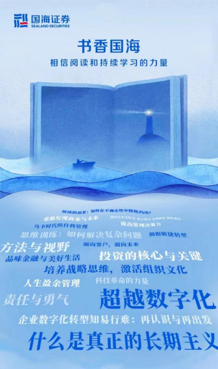 公司持续发挥各级管理人员示范作用。将“一把手带头讲学习”列入《打造学习型组织评分细则》,作为各单位年度经营考核战略指标要求。自2022年起,公司开设了“书香国海”特别策划栏目,国海大家长(中高层管理者)向员工推荐好书,开启深度阅读计划。自创设以来,共发布22期,邀请40余位中高层管理人员推荐80余本书籍,书籍类别多样,题材丰富,不仅有最前沿的科技力量科普,投资心得与体系介绍,更有商业生活、责任担当、思维方式、人生哲理等优质内容输出。