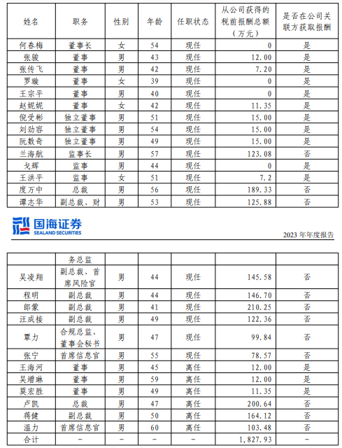 2023年,程明先生的薪酬为146.7万元,同比增长1.92%,并且是国海证券唯一一位薪酬同比增长的现任高管。