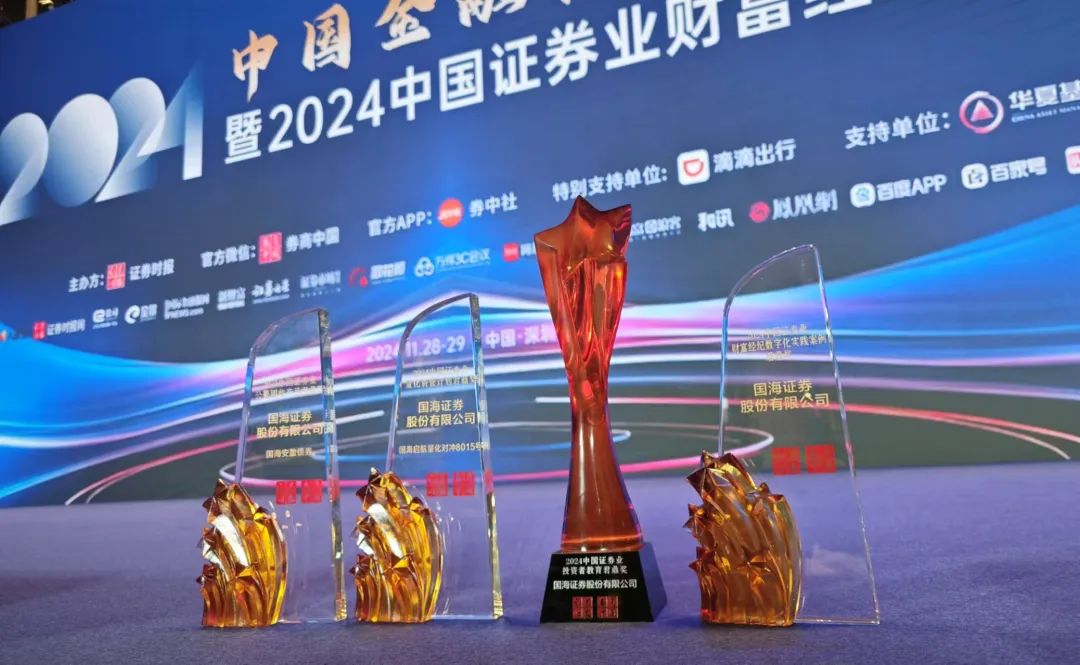 11月28日,证券时报主办的“2024中国金融机构年度峰会”在深圳举办,凭借大财富大资管转型的优异成绩,国海证券成功揽获“财富经纪数字化实践案例”“投资者教育”“公募固收产品”“量化资管计划”等四座君鼎奖。