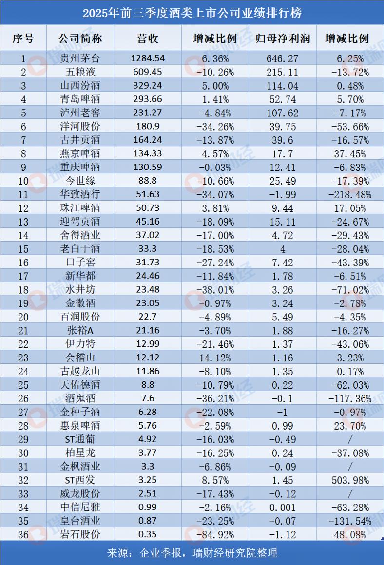随着 2025 年三季报收官,A 股酒类(含白酒、黄酒、葡萄酒、啤酒、预调鸡尾酒等)上市企业陆续交出成绩单。