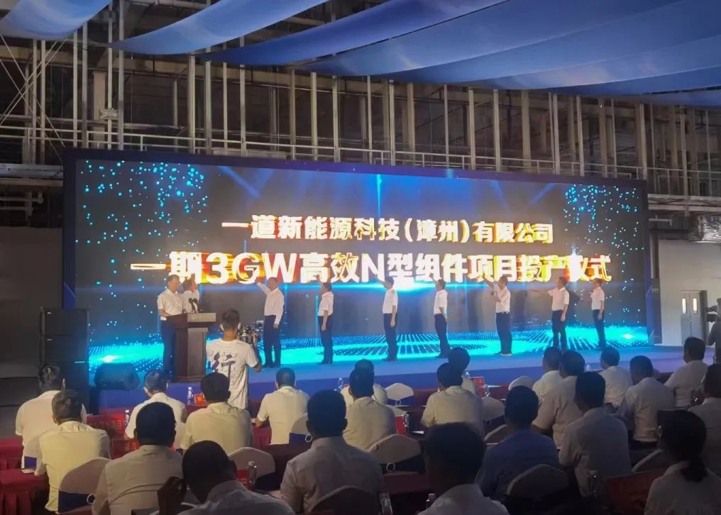 10月8日,一道新能源东山基地一期3GW高效N型光伏组件项目投产仪式在漳州市东山光伏新能源科技产业园隆重举行。漳州市领导,东山县领导以及一道新能源、漳州发展等业主代表共同见证项目投产。