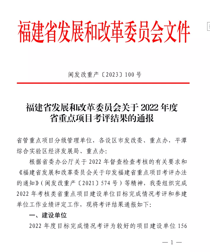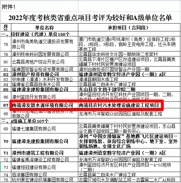近日,福建省发展和改革委员会对2022年度省重点项目参建单位工作业绩考评结果进行通报。其中,漳州发展合资控股子公司南靖漳发碧水源环境有限公司承建的南靖县农村污水处理设施建设工程项目获评较好建设(代建)单位。