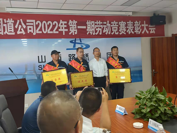 6月11日,太原国道公司召开2022年度第一期劳动竞赛表彰大会暨下达第二期劳动竞赛考核目标大会,会上宣布竞赛结果,山西路桥一公司岚马线LJ2标荣获太原国道公司“2022年第一期劳动竞赛第一名”;荣获“进度奖”、“安全奖”;冀文俊同志荣获“优秀项目经理”;谢雪同志荣获“先进个人”;协作队伍南昌市腾鹏建筑劳务有限公司获“优秀协作队伍”。