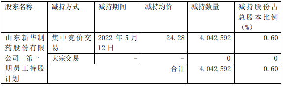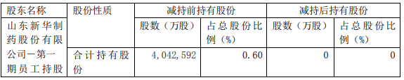 本次减持完成后,新华制药-第一期员工持股计划不再持有新华制药股份。