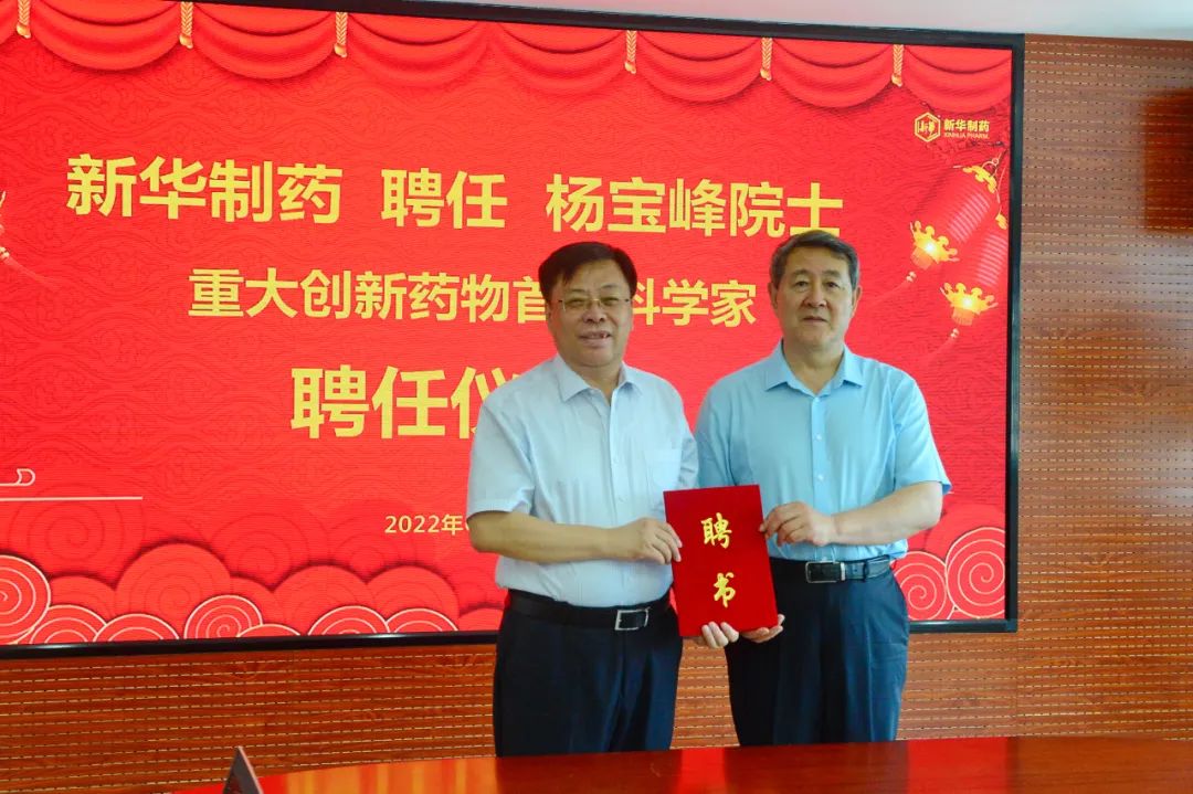 6月19日,新华制药举行隆重仪式,聘任中国工程院院士杨宝峰教授担任公司“重大创新药物首席科学家”。