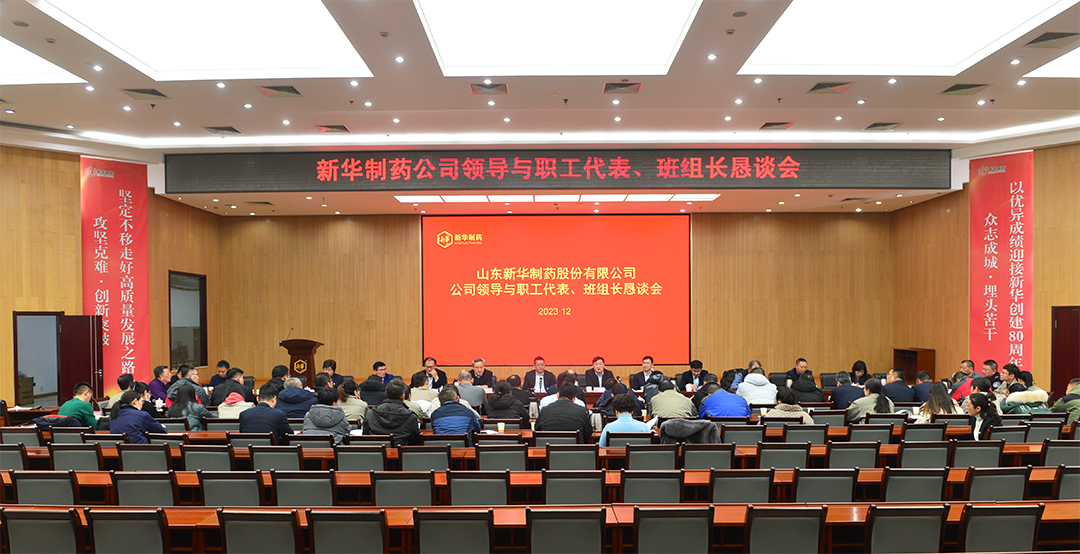 为了充分发挥职工代表在推动企业改革发展中的积极作用,听取职工代表对企业发展的意见建议,凝聚共识、汇聚力量,12月27日,新华制药召开2023年度公司管理层与职工代表、班组长恳谈会。公司领导贺同庆、徐文辉、徐列、侯宁、郑忠辉、魏长生、寇祖星以及有关管理部门负责人与来自基层40多名班组长代表和职工代表参会。徐列主持会议。
