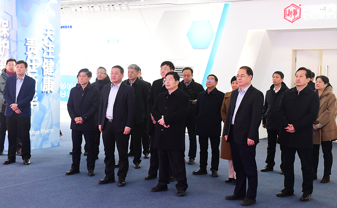 2月2日,山东省副省长陈平到新华制药调研医药产业发展情况。省医保局局长左毅、省工业和信息化厅二级巡视员吴炎、省保健局局长万书臻、省市场监管局一级巡视员辛仁东参加调研;淄博市委常委、副市长宋振波,副市长毕红卫,华鲁集团党委副书记毕玉国,新华制药党委书记、董事长贺同庆,党委副书记、董事、总经理徐文辉等陪同调研。
