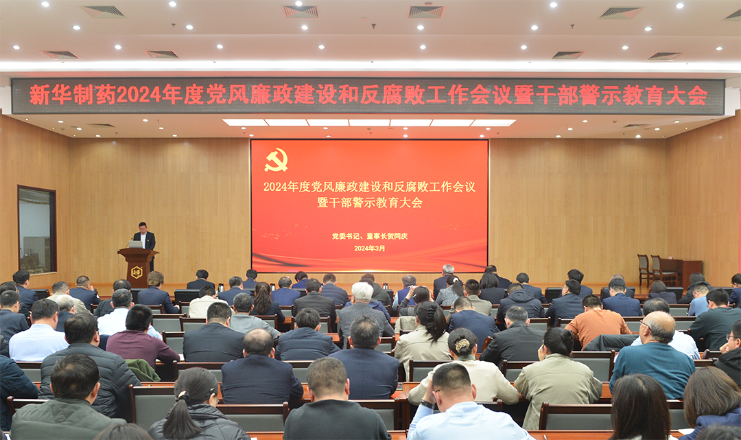 3月4日下午,新华制药2024年度党风廉政建设和反腐败工作会议暨干部警示教育大会在总部401会议室召开。公司党委书记、董事长贺同庆出席会议并讲话,公司领导、各单位中层以上管理人员、部分重点岗位人员参加会议,党委副书记、纪委书记、工会主席徐列主持会议。