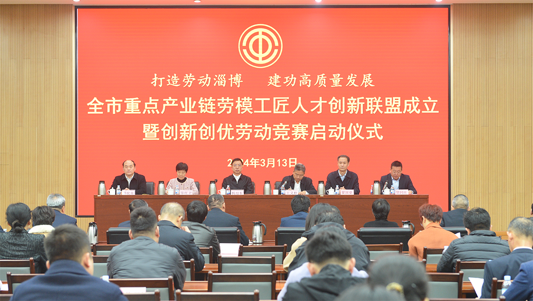 3月13日,淄博市重点产业链劳模工匠人才创新联盟成立暨创新创优劳动竞赛启动活动在新华制药举行。淄博市委副书记、政法委书记杨旭东出席并讲话,市人大常委会副主任、市总工会主席王义朴主持,副市长毕红卫出席。新华制药党委书记、董事长贺同庆作为链主企业代表发言。
