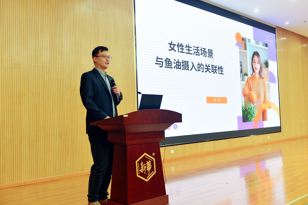 下午13:30,活动在一场公司产品小科普的宣讲中拉开帷幕,来自新华医贸公司大健康部的杨光给大家讲解了鱼油DHA凝胶糖果和叶黄素酯鱼油DHA凝胶糖果产品知识。