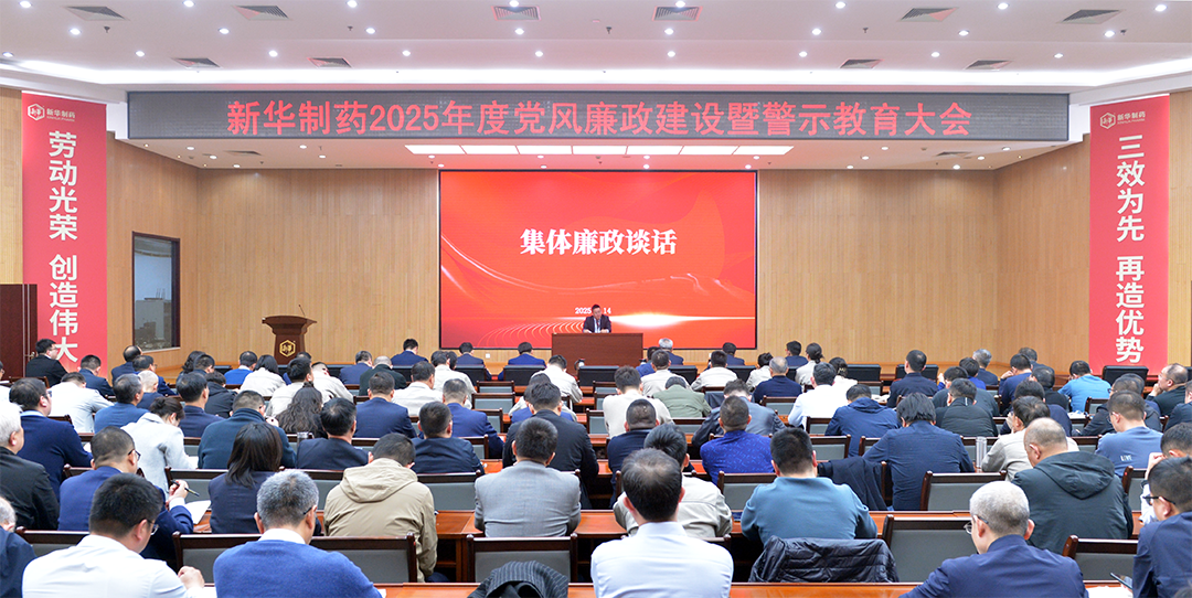 3月14日下午,新华制药2025年度党风廉政建设暨警示教育大会在总部401会议室召开。公司党委书记、董事长贺同庆出席会议并与参会人员进行集体廉政谈话,党委副书记、总经理徐文辉主持会议,党委副书记、纪委书记徐列作廉政建设工作报告,公司领导班子、各单位中层以上管理人员参加会议。