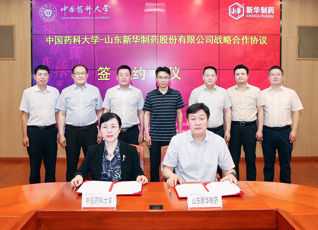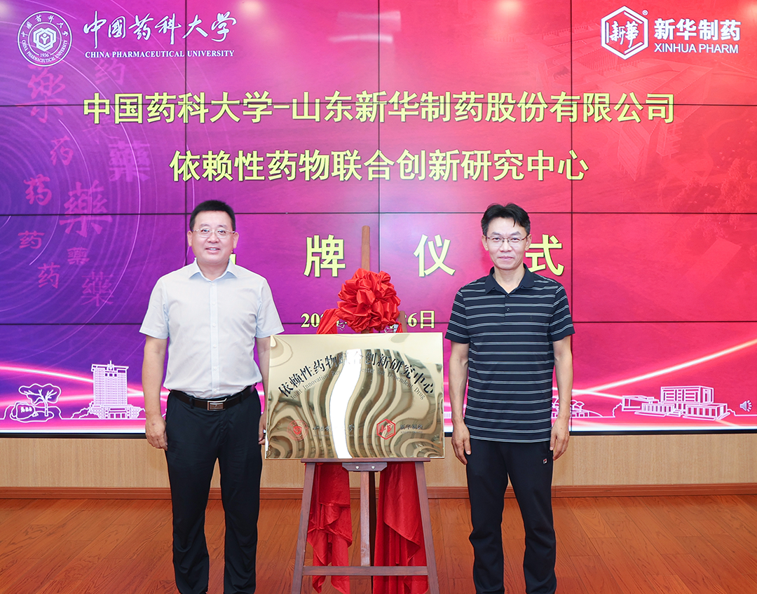 5月26日,山东新华制药股份有限公司与中国药科大学战略合作协议签约仪式暨“依赖性药物联合创新研究中心”揭牌仪式在中国药科大学会议中心隆重举行。中国药科大学校长郝海平,党委常委、副校长姚和权,科研院副院长(主持工作)杨鹏,药学院院长吴照球,新华制药党委书记、董事长贺同庆,党委副书记、董事、总经理徐文辉,党委委员、副总经理郑忠辉,研究院党总支书记、院长潘西海等共同见证了这一重要时刻。此次合作是继“新华制药-中国药科大学创新药物及高端制剂联合研究中心”、“新华制药-中国药科大学重大公共安全及应急用药研发创新中心”之后,双方战略合作的又一次深化与拓展,标志着双方在深化产学研融合、推动医药创新发展的道路上迈出了更加坚实的一步,为构建医药健康领域创新生态树立了新标杆。