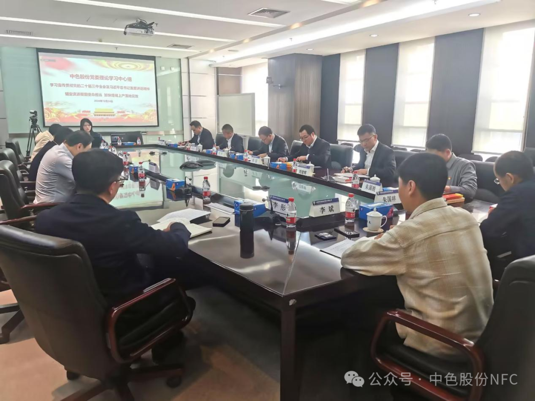 为深入学习贯彻党的二十届三中全会精神,进一步推动企业全面深化改革,12月23日,中色股份党委以“锚定资源报国使命担当,加快增储上产落地见效”为主题,开展中心组学习研讨。集团公司党委委员、副总经理,中色股份党委书记、董事长刘宇同志主持会议并作工作部署。
