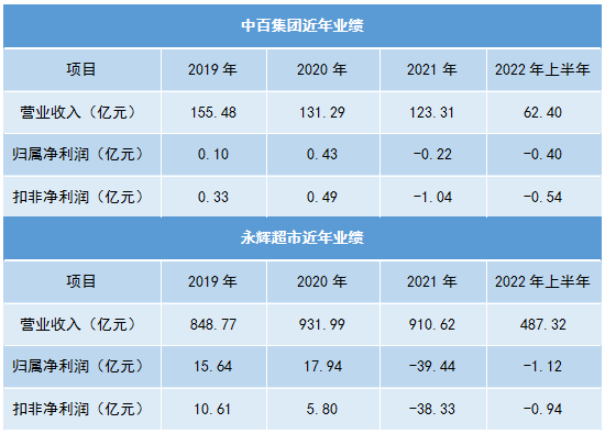 近年来,中百集团和永辉超市均出现亏损。去年,中百集团归属净利润亏损0.22亿元,扣非净利润亏损1.04亿元。同期,永辉超市相应亏损更是分别高达39.44亿元和38.33亿元。今年上半年,两者继续保持亏损状态。