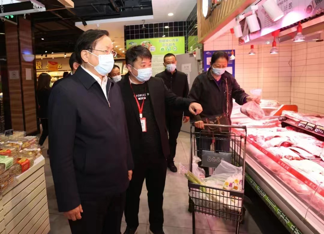 10月29日,省委副书记、省长王忠林,市委副书记、市长程用文等领导一行到中百集团仓储超市黄浦路店,实地检查门店疫情防控、物资供应、物价稳定等工作。