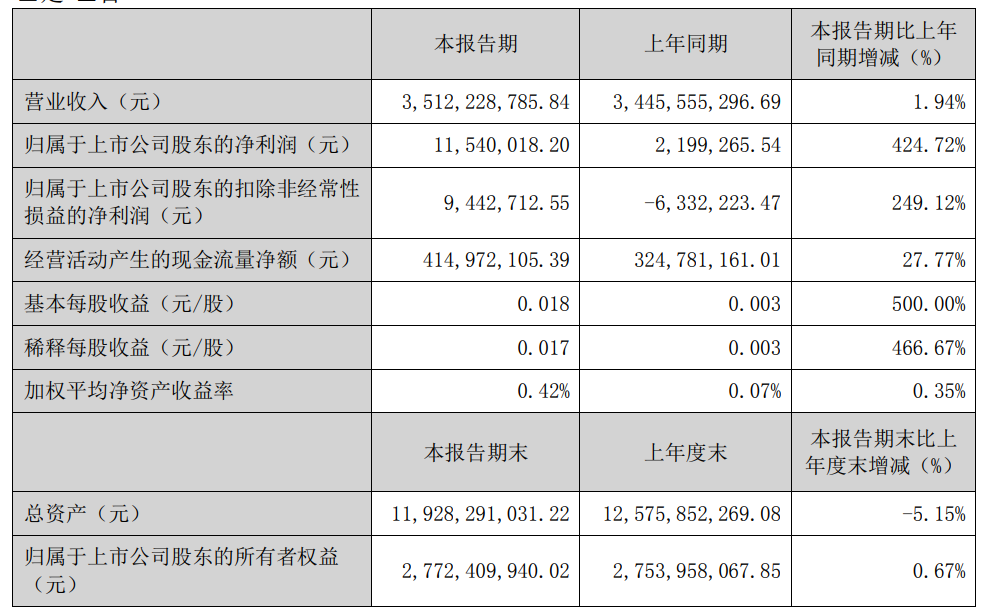 据报告,中百集团2023年第一季度营业收入35.12亿元,同比增1.94%;归属于上市公司股东的净利润1154万元,同比增424.72%。