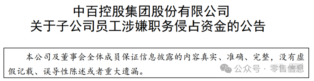 公告显示,2023年7月,中百集团全资子公司中百仓储超市发现其财务人员邵某某存在职务侵占资金嫌疑,立即向公安机关报案。因犯罪嫌疑人逃到境外,为保证信息源不断掉,立案侦查全部秘密进行。2023年10月,公安机关将窜逃到境外的相关犯罪嫌疑人全部抓捕到案。根据初审,邵某某处心积虑,发现并利用供应商结算系统漏洞,针对生鲜非标品采购与结算的特殊性,通过虚假勾对验收单据、伪造审批人签字、虚增供应商等隐蔽手段,恶意侵占公司巨额资金。该案正在进一步侦办及追赃挽损中。