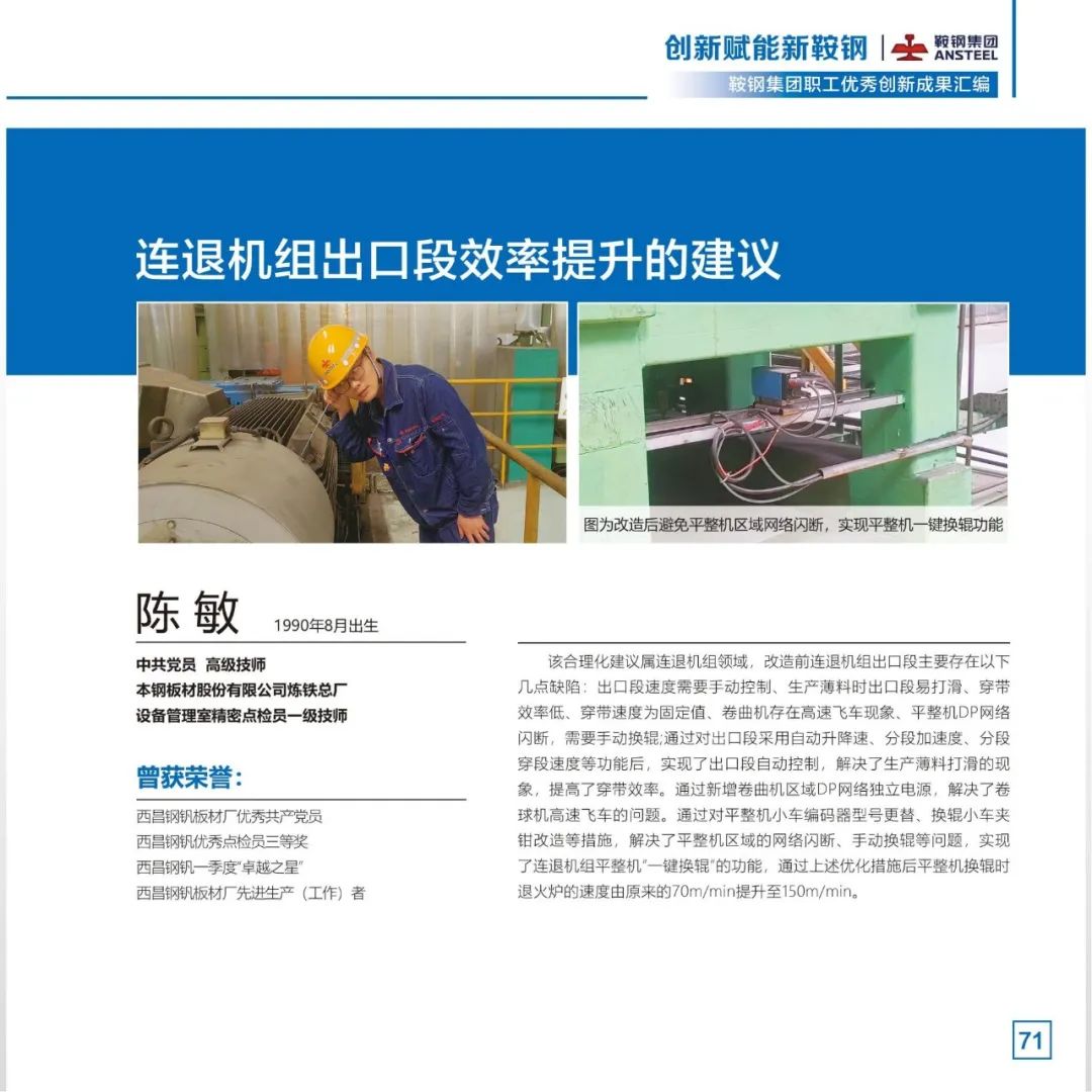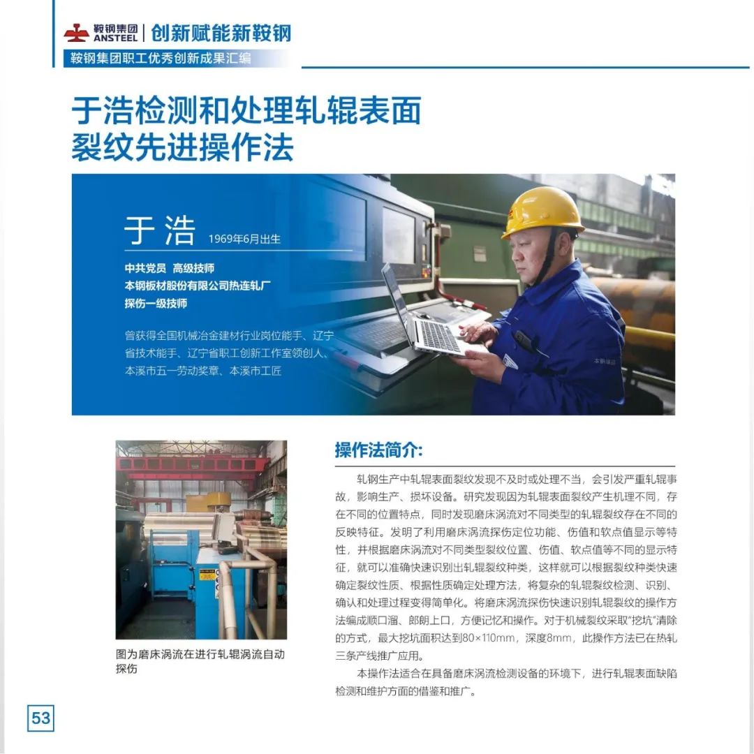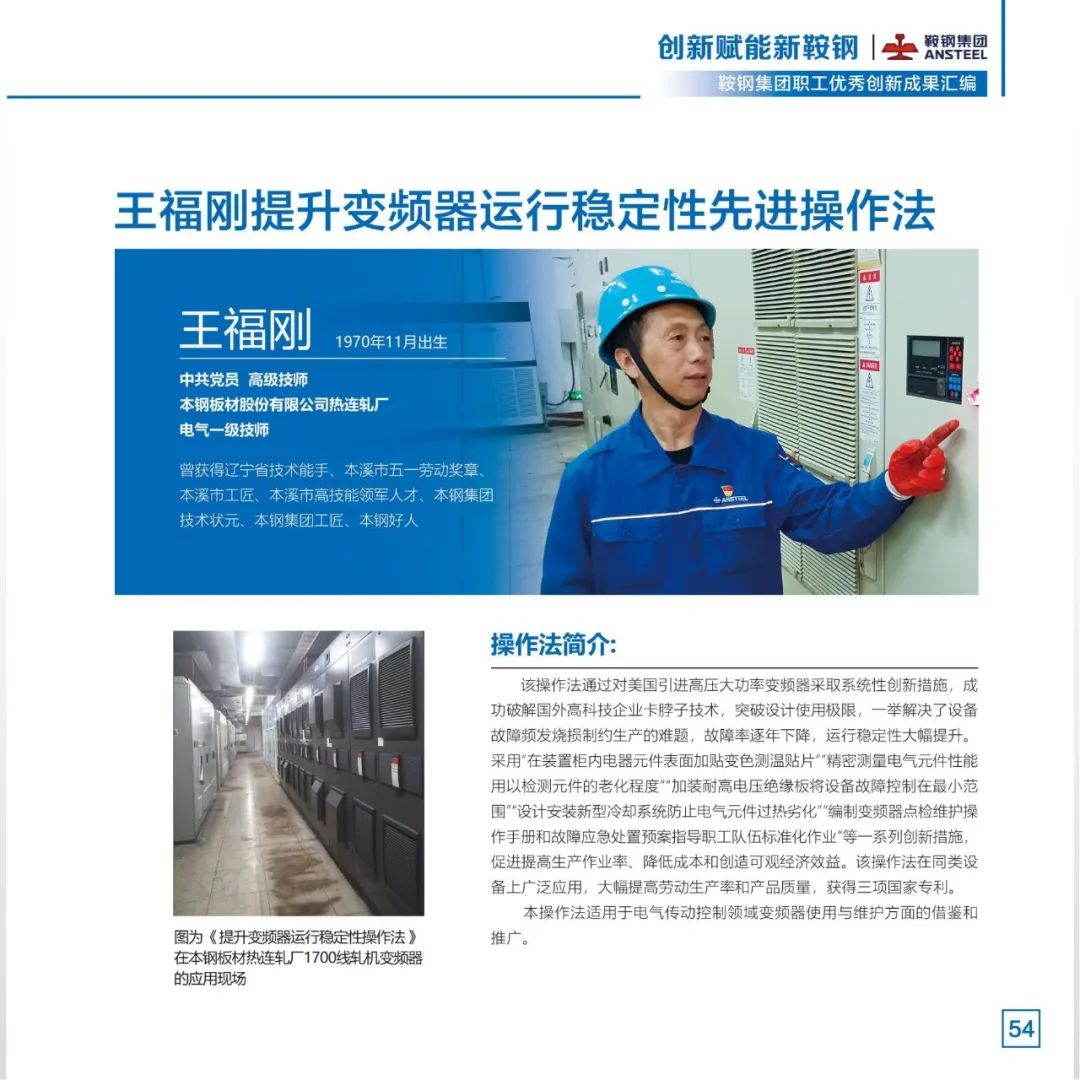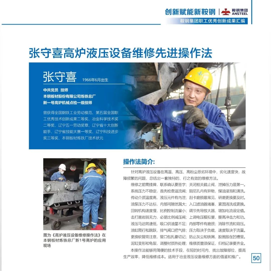 习近平总书记指出,必须坚持科技是第一生产力、人才是第一资源、创新是第一动力。2022年,鞍钢集团不断完善职工创新工作室、创新项目、先进操作法、合理化建议“四轮驱动”的创新活动新模式,把群众性创新活动打造成推动企业改革发展的动力引擎。广大职工充分发挥集智创新功能,围绕重点领域、重点技术踊跃开展创新创效活动,取得一系列创新成果。鞍钢集团工会将部分2022年度职工创新工作优秀成果汇编成册,供广大职工学习借鉴、转化应用,不断拓展提升创新成果的示范价值,切实把群众性创新活动成果转化为助推新鞍钢高质量发展的内生动力,为新鞍钢建设世界一流企业凝聚创新力量。