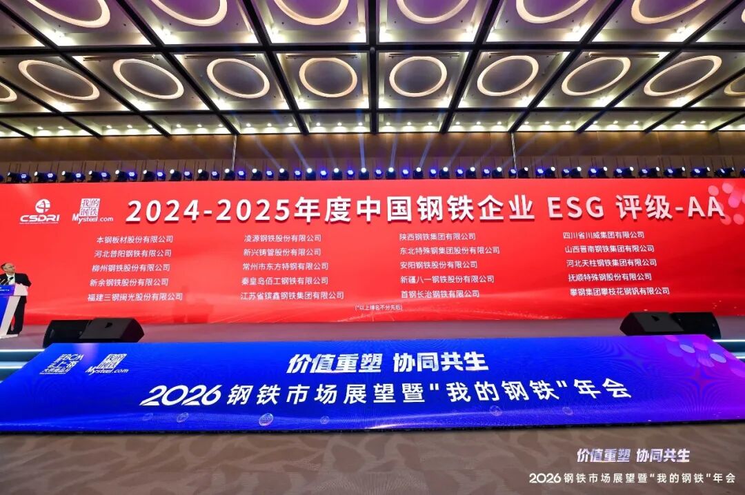 2025年12月19日至21日,“2026钢铁市场展望暨‘我的钢铁’年会”在上海盛大召开。会上,由冶金工业经济发展研究中心牵头构建、上海钢联电子商务股份有限公司提供技术支持,汇聚行业专家智慧共同打造的“中国钢铁企业ESG评级”2024-2025年度评选结果新鲜出炉,本钢板材在这次评选活动中获得“2024-2025年度中国钢铁企业ESG评级”AA级。