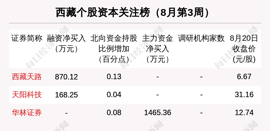 西藏天路被北向资金、融资资金看好。天阳科技被北向资金、融资资金看好。华林证券被主力资金、北向资金看好。
