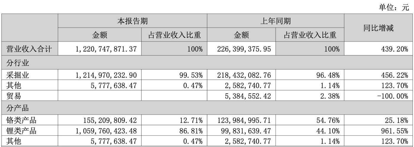 8月24日晚间,西藏矿业(000762.SZ)发布中报,上半年公司实现营业收入12.21亿元,同比增长439.20%;归属于上市公司股东的净利润4.75亿元,同比大增1018.30%。