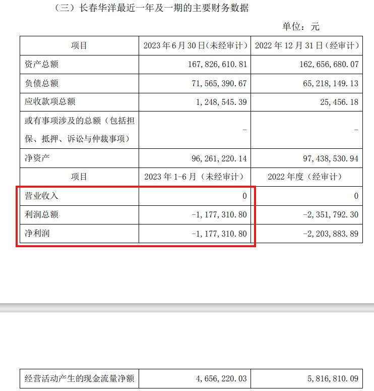 那么,通化金马能否依靠子公司长春华洋完成“信仰一跃”呢?截至2023年6月30日,长春华洋0营收,亏损117.73万元。