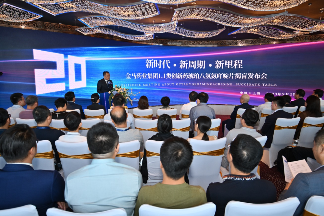 2023年9月19日,通化金马药业集团1.1类创新药琥珀八氢氨吖啶片揭盲发布会在上海中心举办。