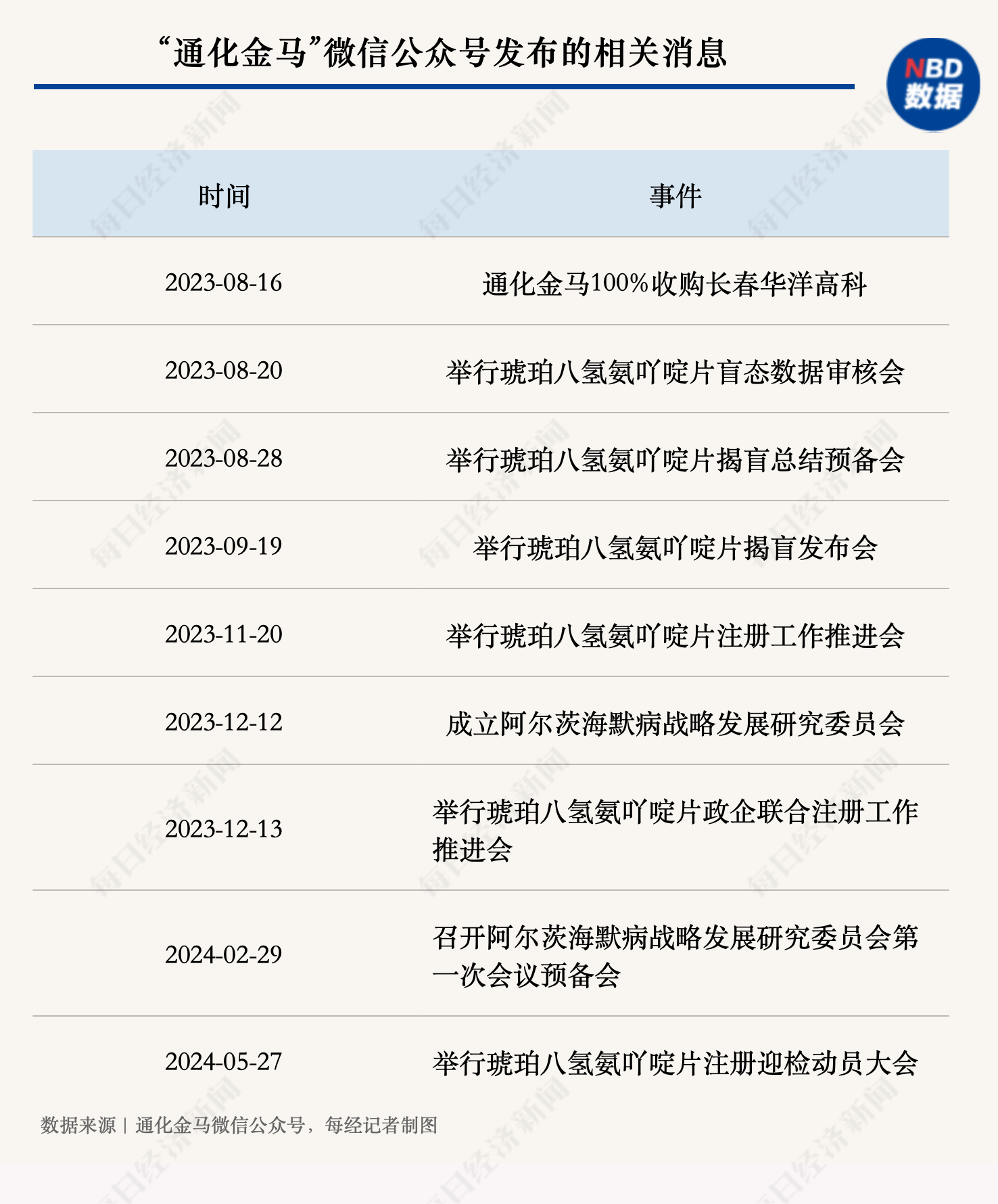 丁先生对琥珀八氢氨吖啶片的这些认知,主要来自公开信息。根据《每日经济新闻》记者在通化金马公众号上梳理,通化金马围绕琥珀八氢氨吖啶片的信息披露动作非常频繁。