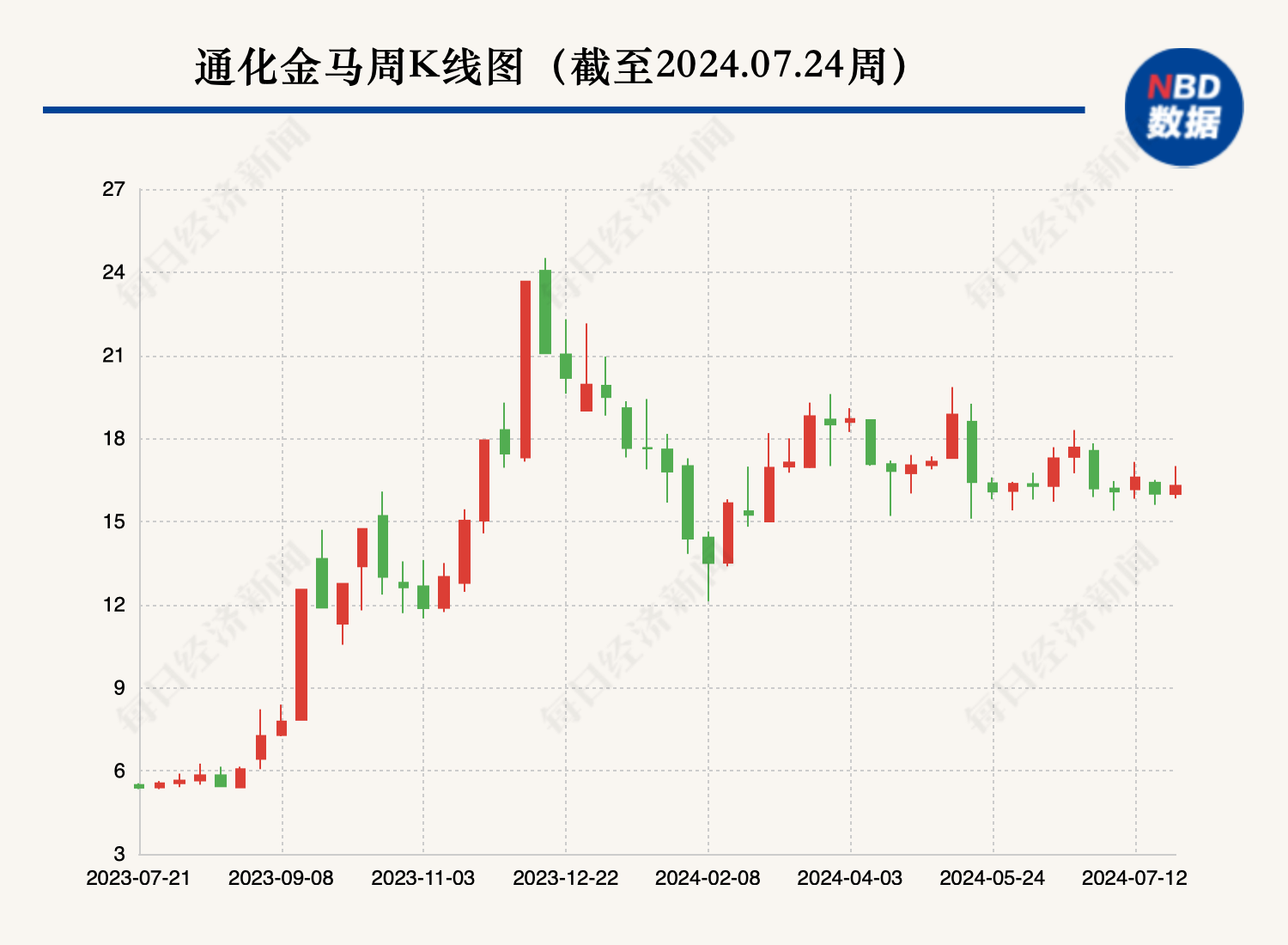 重要股东高位减持的同时,通化金马也并未受到太多专业机构关注。在可查询的定期公告的披露中,机构投资者只持有少量通化金马股份,2023年年报显示,9家基金公司合计持有通化金马不足1%股份。