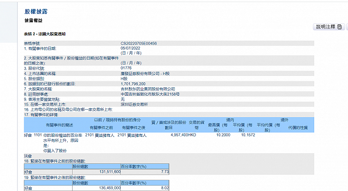 近日,港交所披露易显示,广发证券主要股东之一吉林敖东又开始增持。