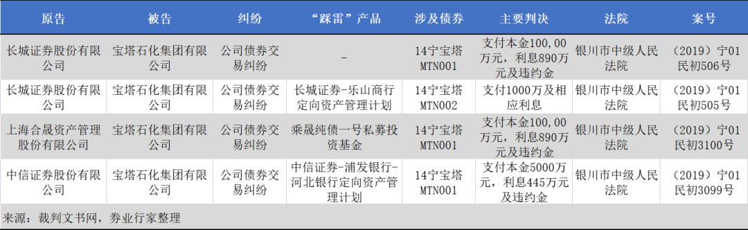 至于行家点评过的百亿私募合晟资产,裁判文书网共有7份公开判决书,涉及“16同益债”“17金钰债”“16体EB01”和“14宁宝塔MTN001”。