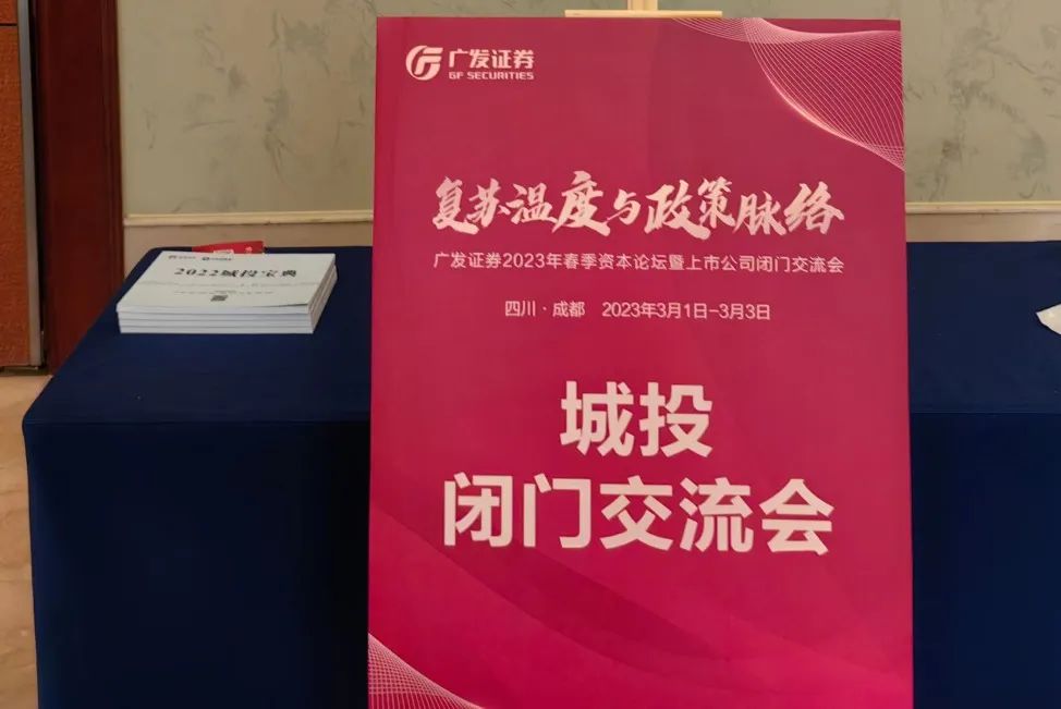 2023年3月1日至3日,“复苏温度与政策脉络”广发证券2023年春季资本论坛暨上市公司闭门交流会在成都举办,3000余人到场参会。本次会议分为主论坛、分论坛及上市公司闭门交流三部分,同时组织成都周边特色产业链调研。广发证券邀请逾100位重磅行业专家、逾600家上市公司高管,包括50余名上市公司掌门人,与海外内投资者进行深度交流,共同探讨新阶段政策脉络,感知中国经济复苏温度,挖掘行业投资机遇。