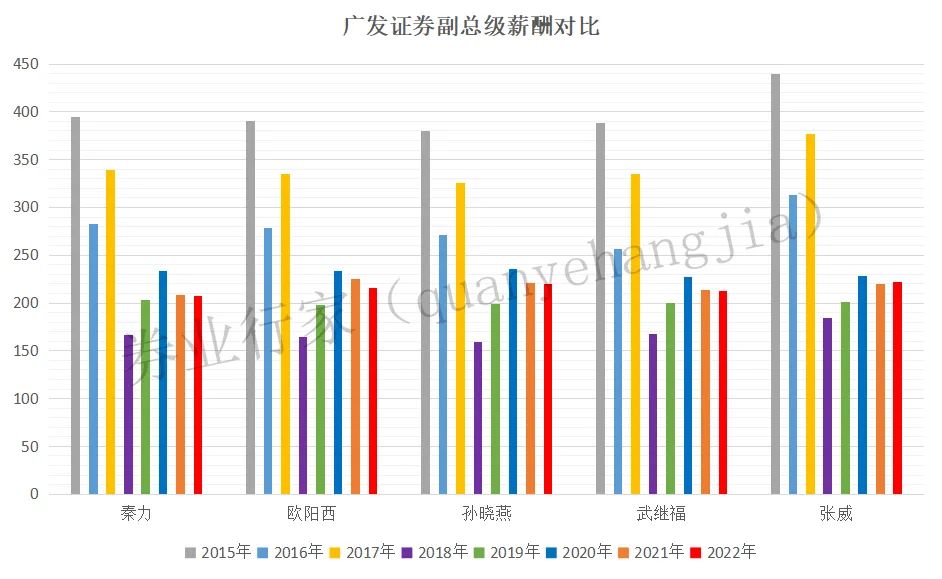 而在2022年席卷证券行业的“降薪潮”中,继续担任执行董事、公司总监的秦力,薪酬为207.24万元,同比略降0.40%;继续担任公司总监的欧阳西,薪酬为215.69万元,同比降幅仅为4.41%。