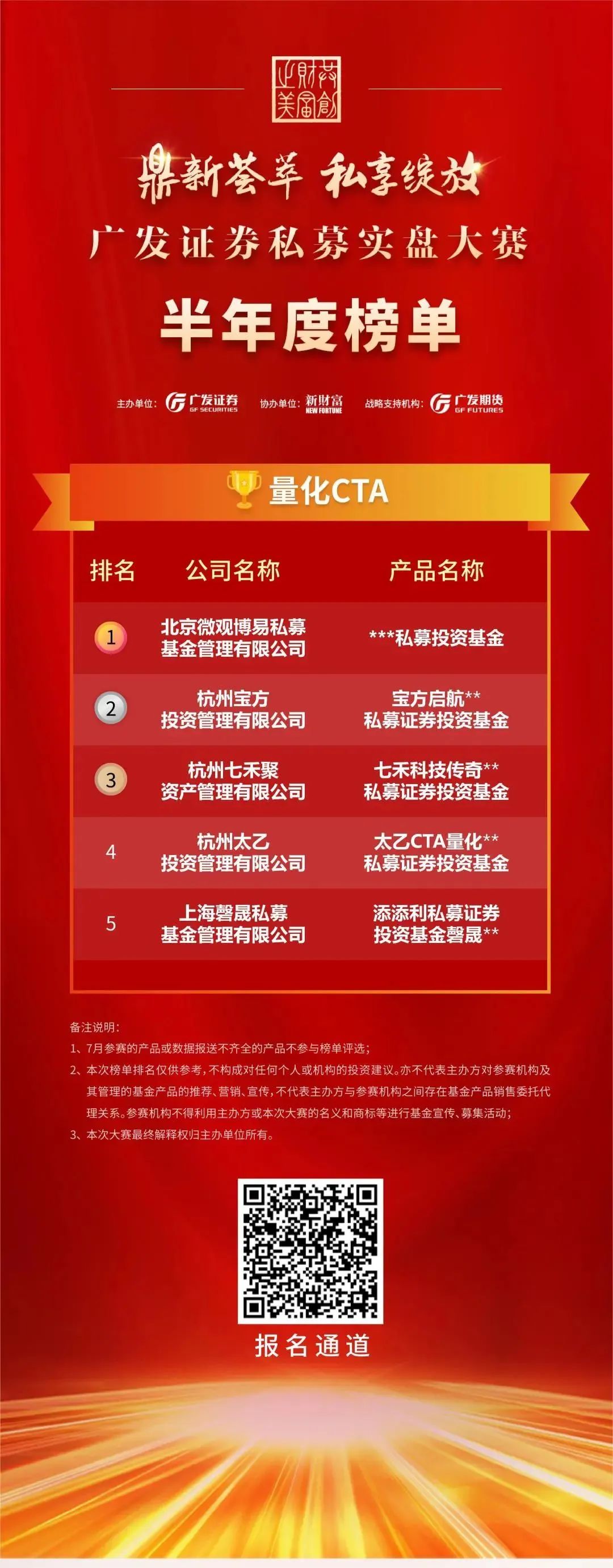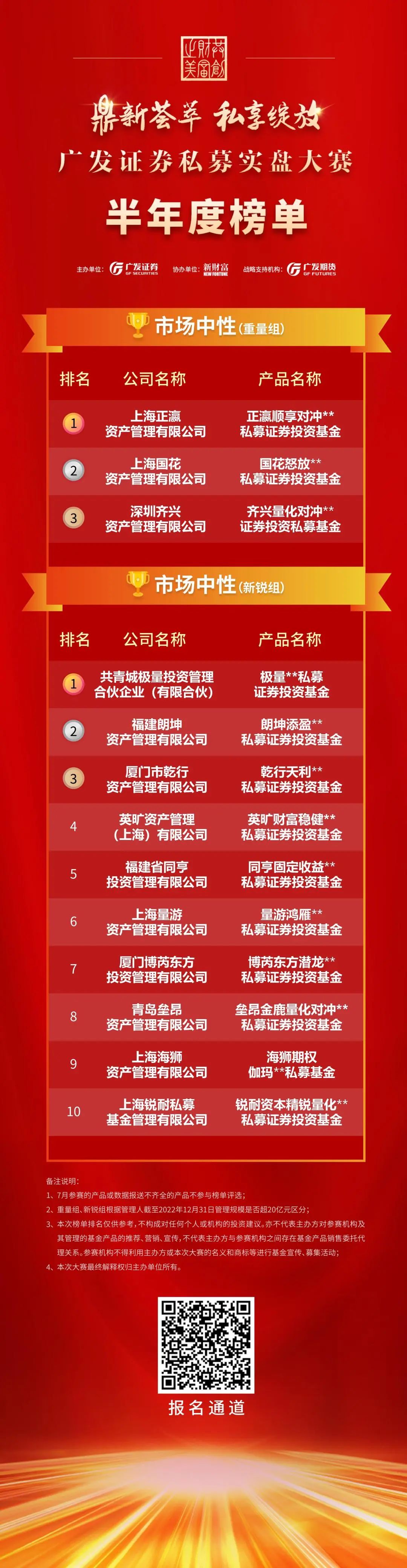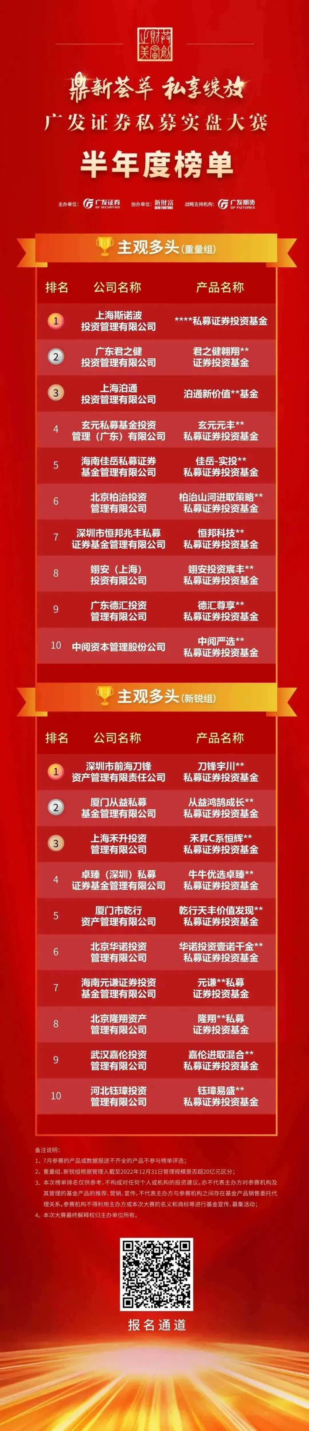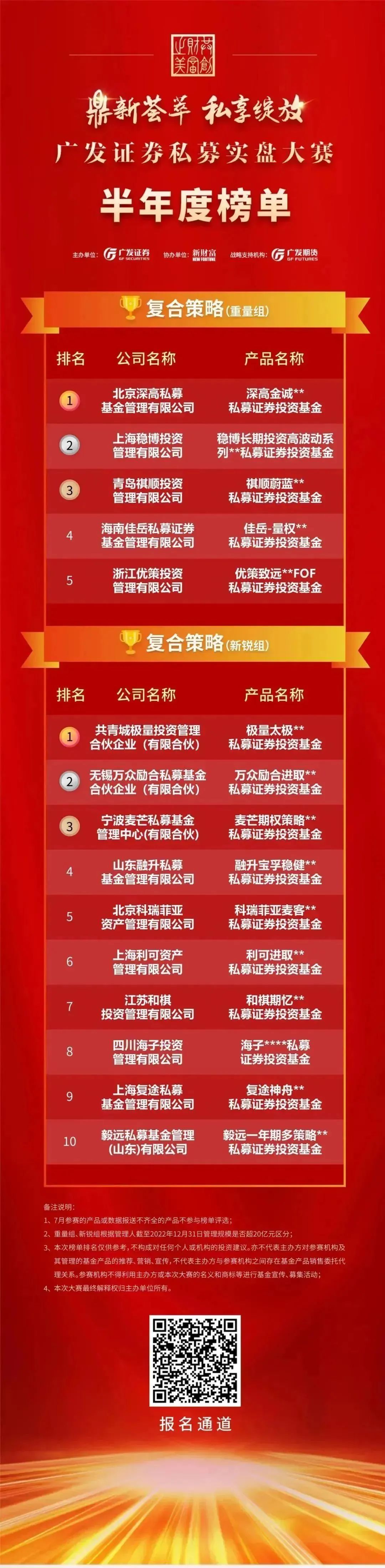 以下为“鼎新荟萃私享绽放”广发证券私募实盘大赛半年度榜单: