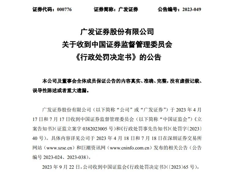 此外,在广发证券正式收到罚单之前,牵涉的上市公司美尚生态已详细披露相关违法事实,其实控人也被终身禁入证券市场。